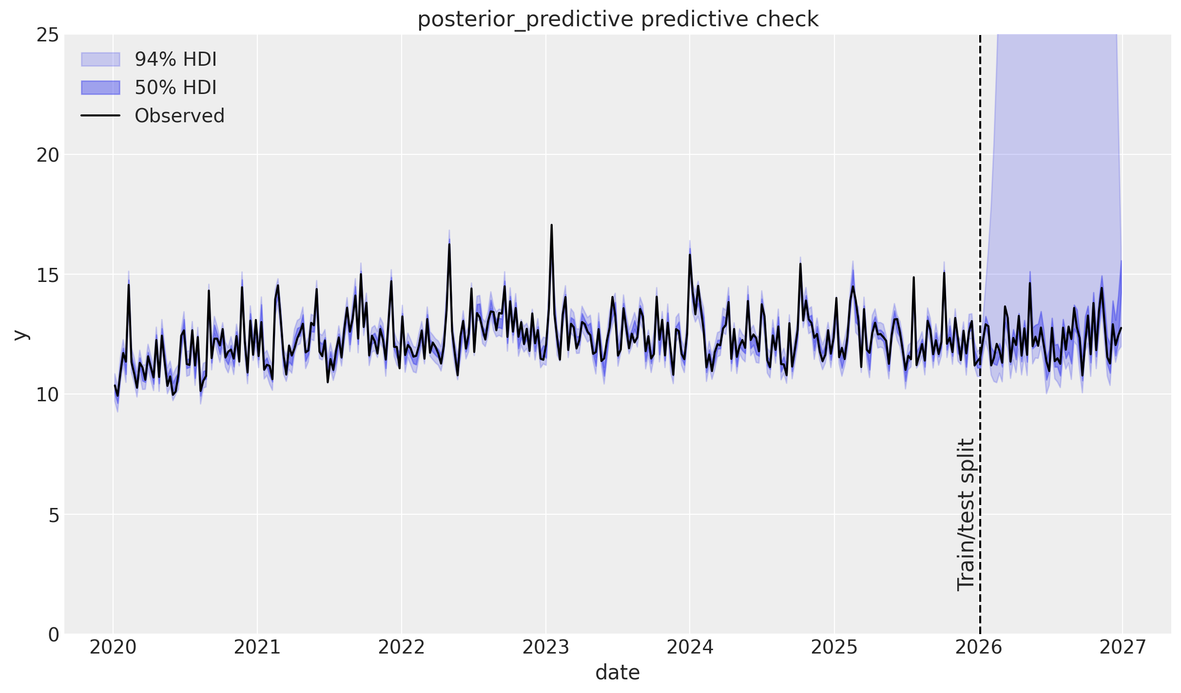 💡 Let’s try to refit the model with a shorter length scale prior mean of one year (52.18 weeks).